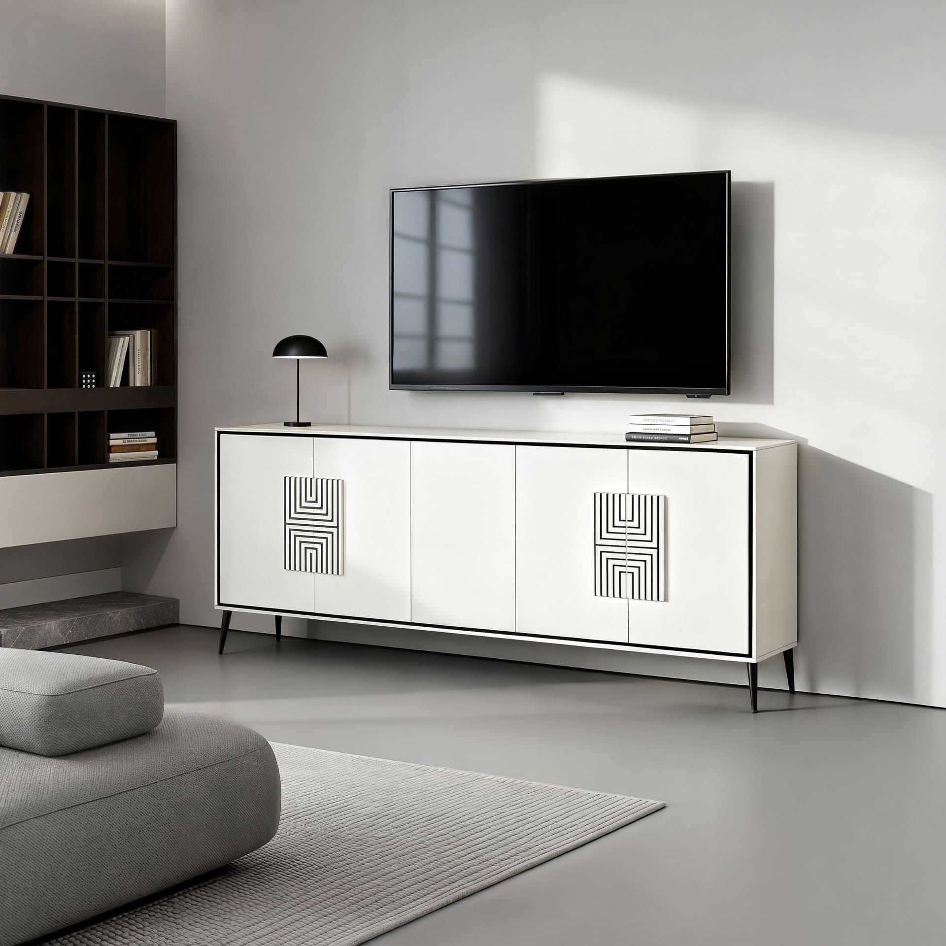 Este mueble incluye un estante en cada hueco.